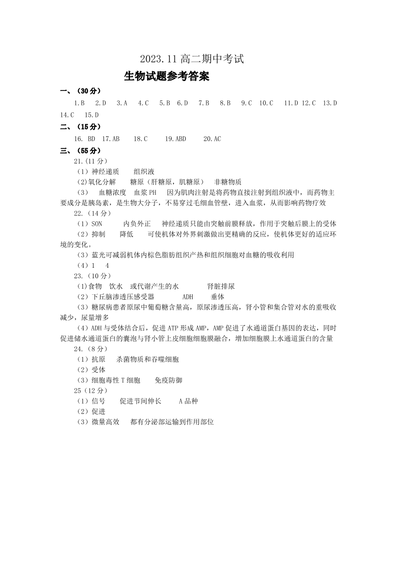山东省名校考试联盟2023-2024学年高二上学期期中考试生物答案