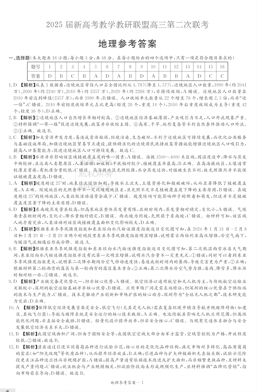 湖南省新高考教学教研联盟2024-2025学年高三第二次联考地理答案