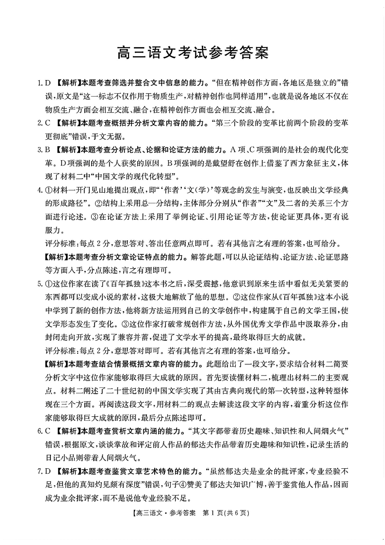 全国优创名校2024-2025学年下学期4月高三跨省域联考语文答案