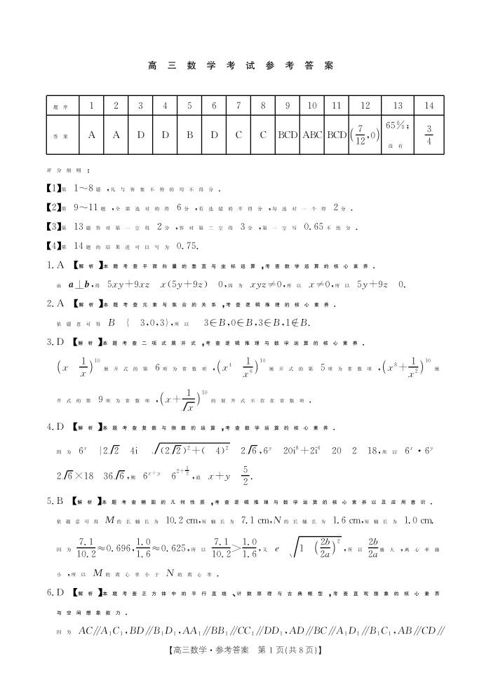 全国优创名校2024-2025学年下学期4月高三跨省域联考数学答案