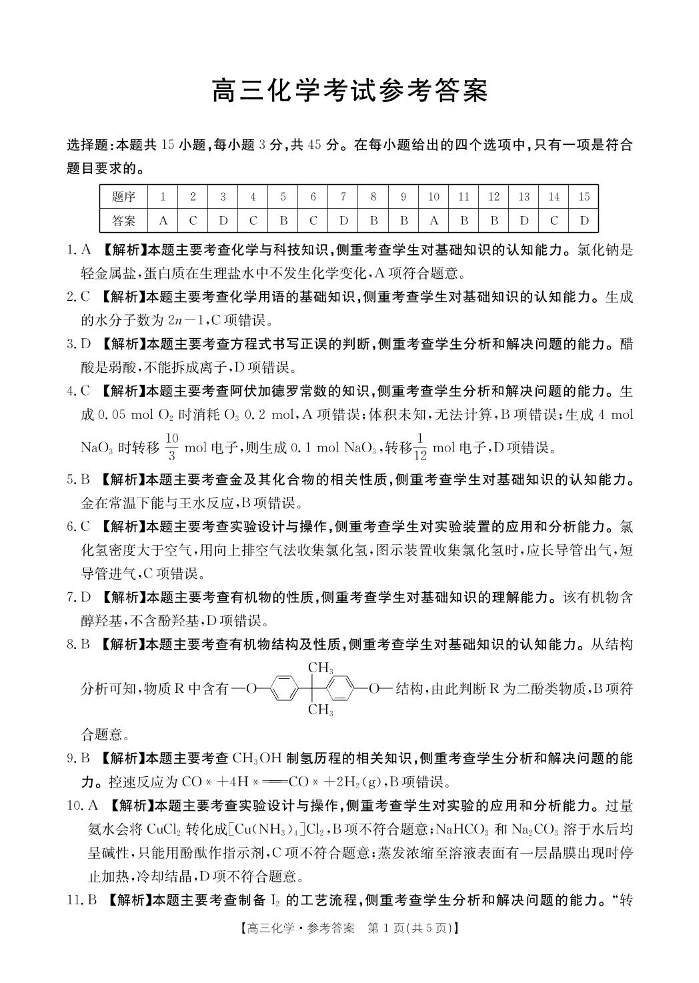 全国优创名校2024-2025学年下学期4月高三跨省域联考化学答案