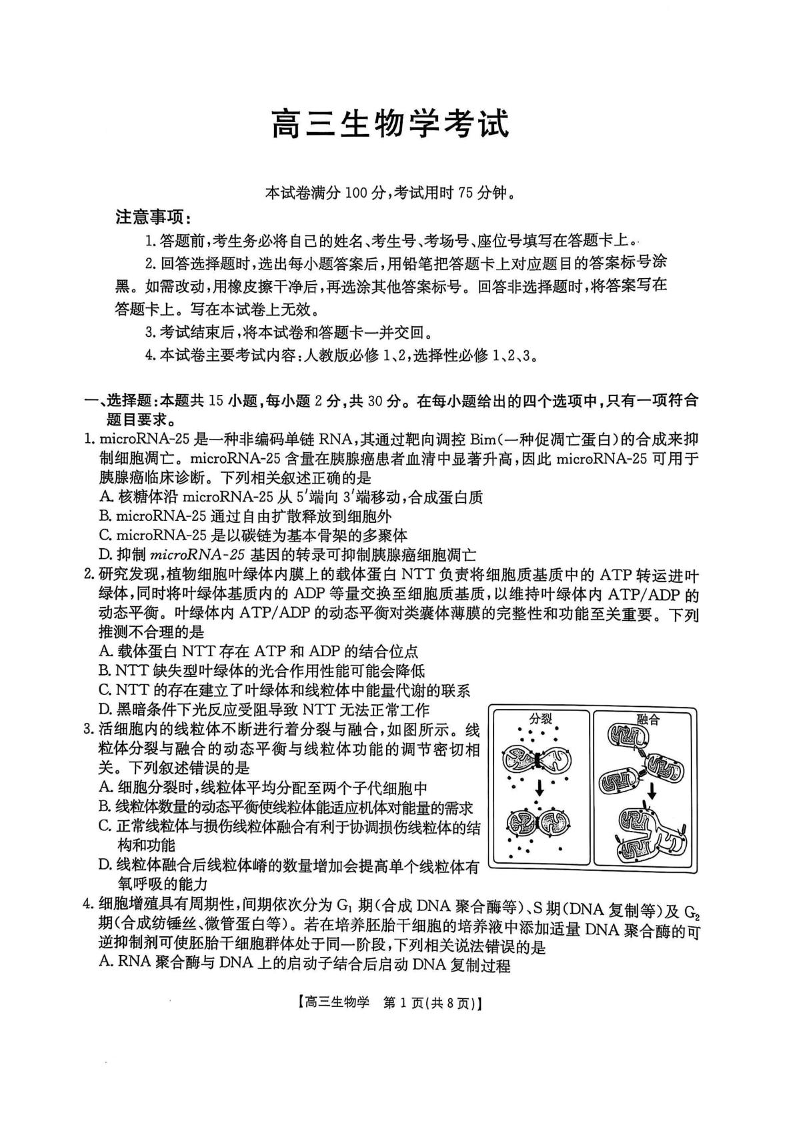 全国优创名校2024-2025学年下学期4月高三跨省域联考生物