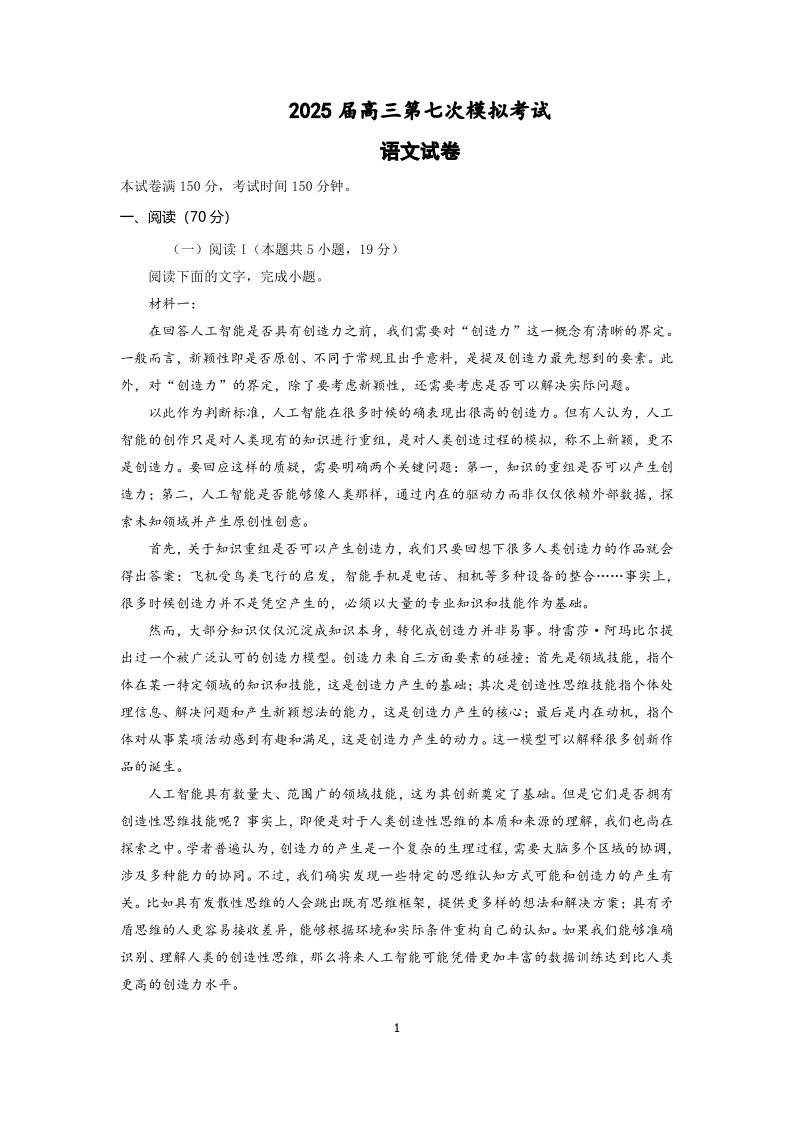 辽宁省本溪市高级中学2024-2025学年下学期高三七模语文