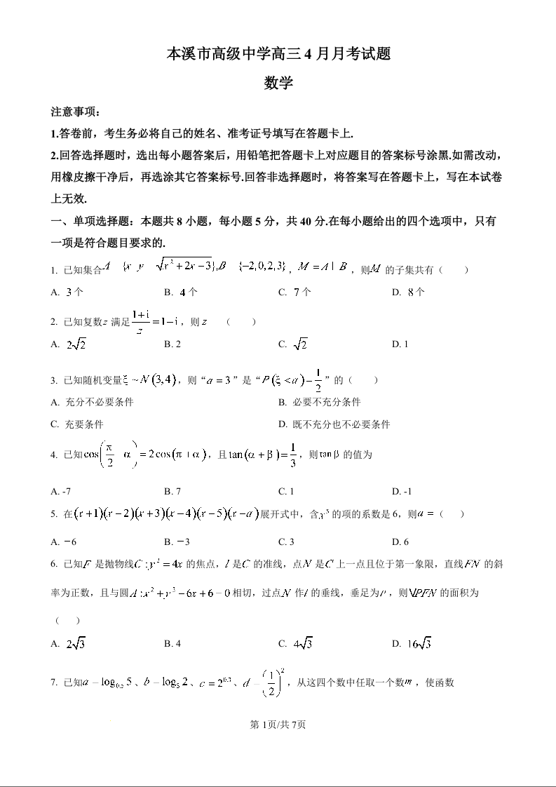 辽宁省本溪市高级中学2024-2025学年下学期高三七模数学+答案