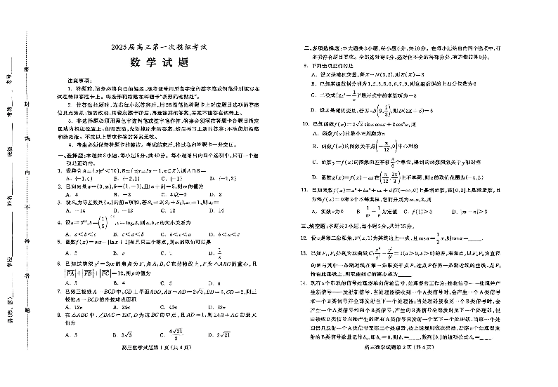 河北省保定市2024-2025学年下学期高三一模统考数学