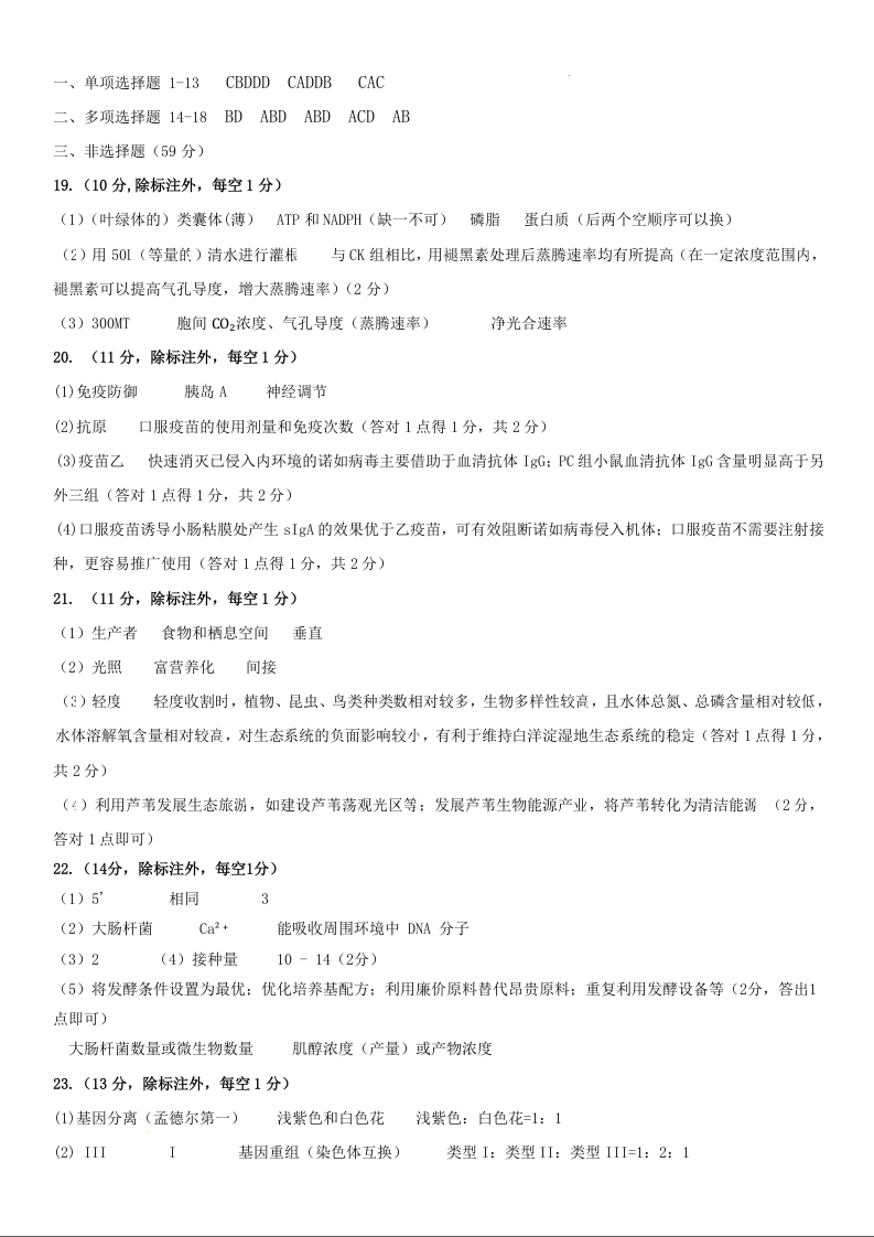 河北省保定市2024-2025学年下学期高三一模统考生物答案