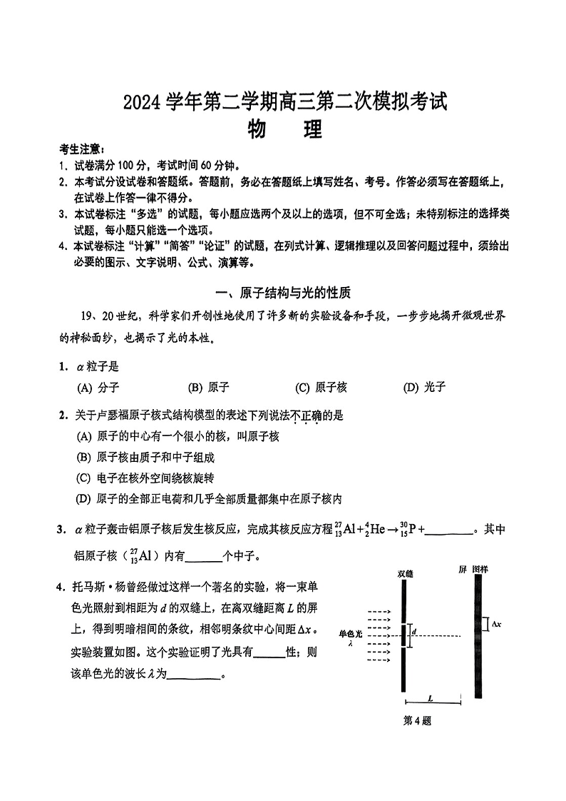 上海市崇明区2024-2025学年下学期高三第二次模拟考试物理+答案