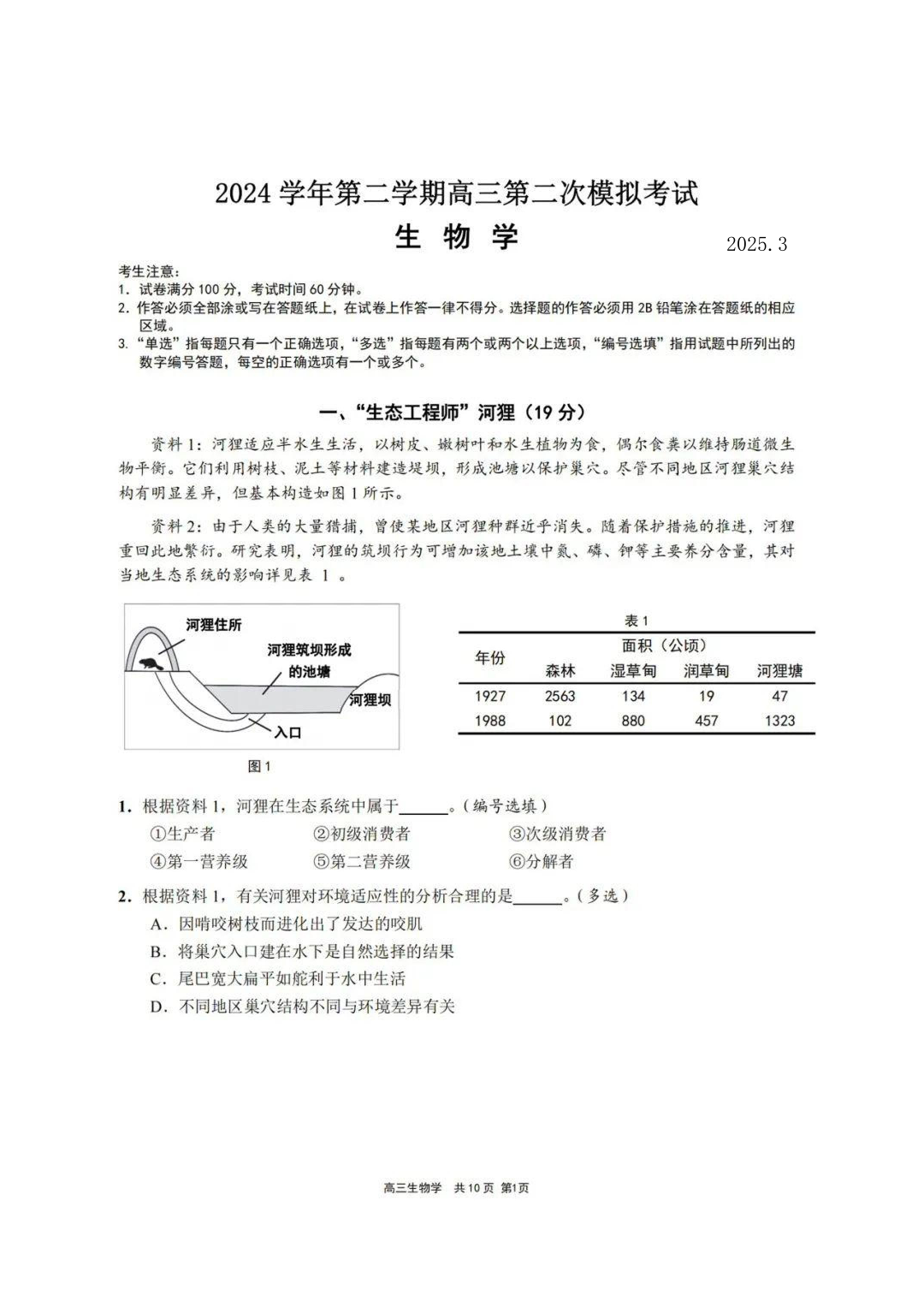 上海市崇明区2024-2025学年下学期高三第二次模拟考试生物