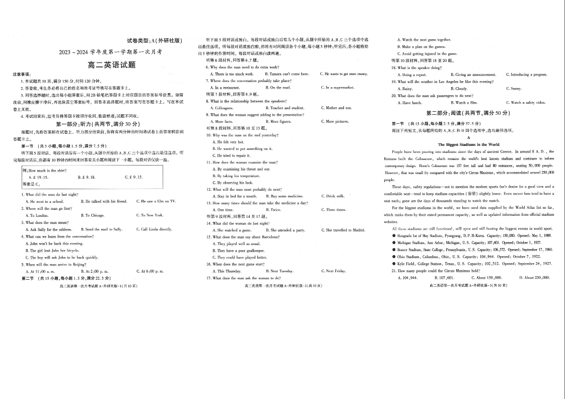 陕西省学林高中校际联考2023-2024学年高二上学期11月期中试题英语+答案