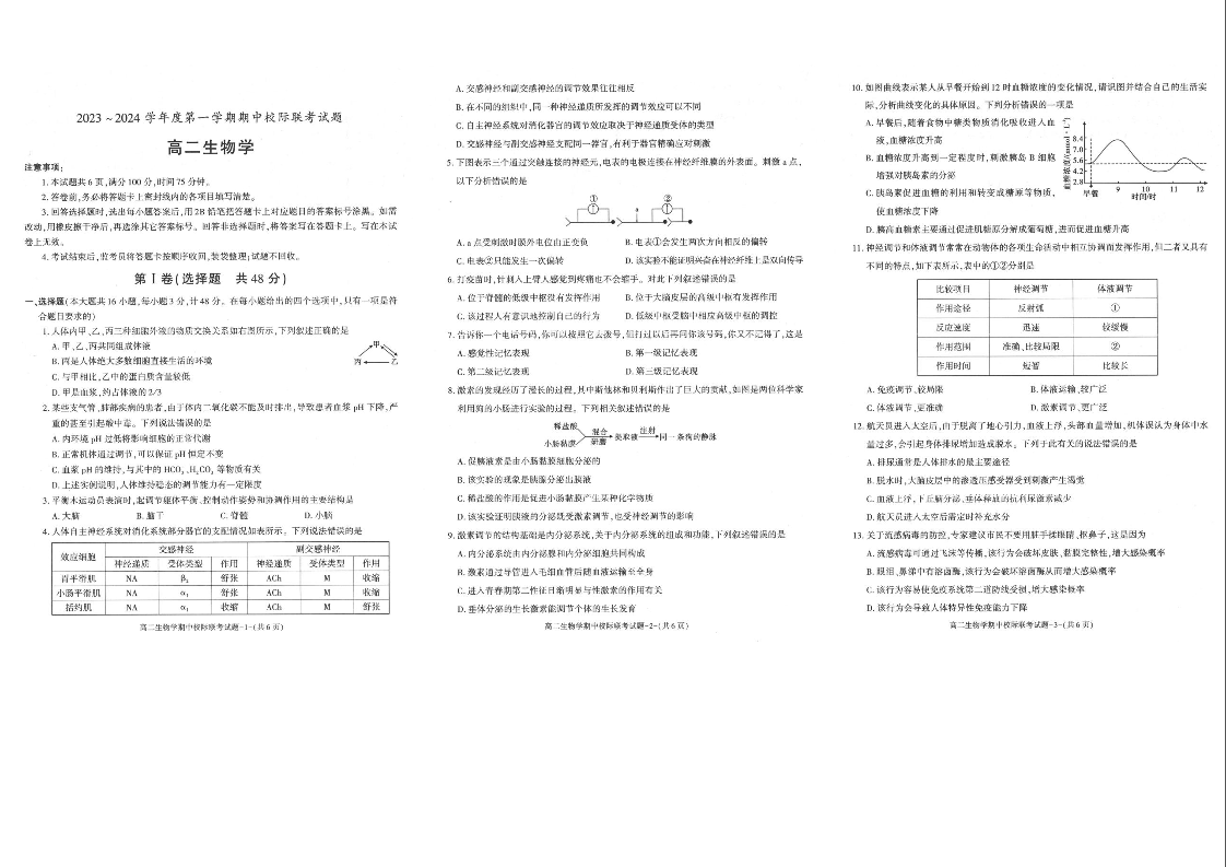 陕西省学林高中校际联考2023-2024学年高二上学期11月期中试题生物+答案