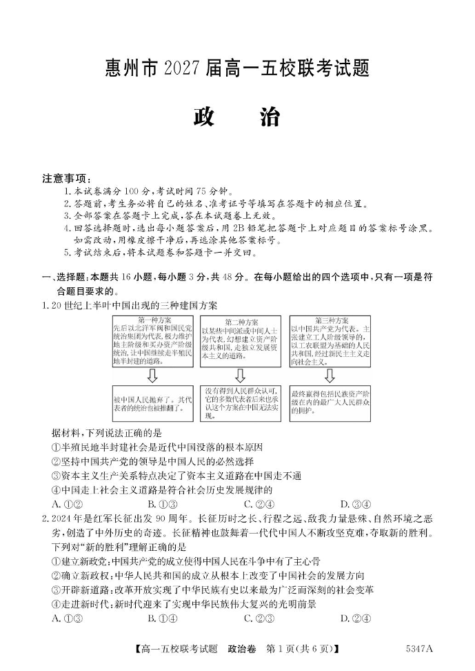 广东省惠州仲恺中学等五校2024-2025学年高一下学期4月联考政治+答案