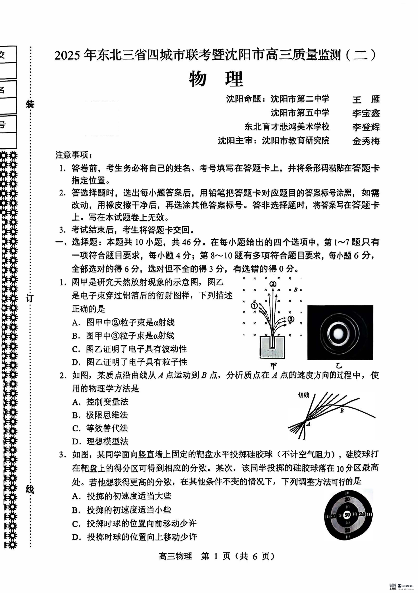 东北三省四市(哈沈长大)2025届高三联考暨沈阳市高三质量监测(二)物理
