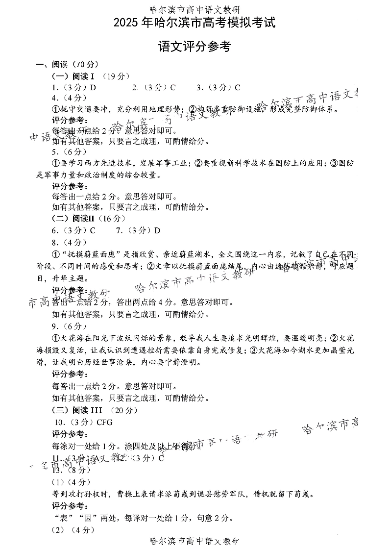 东北三省四市教研联合体2025届高考模拟考试(一)语文答案