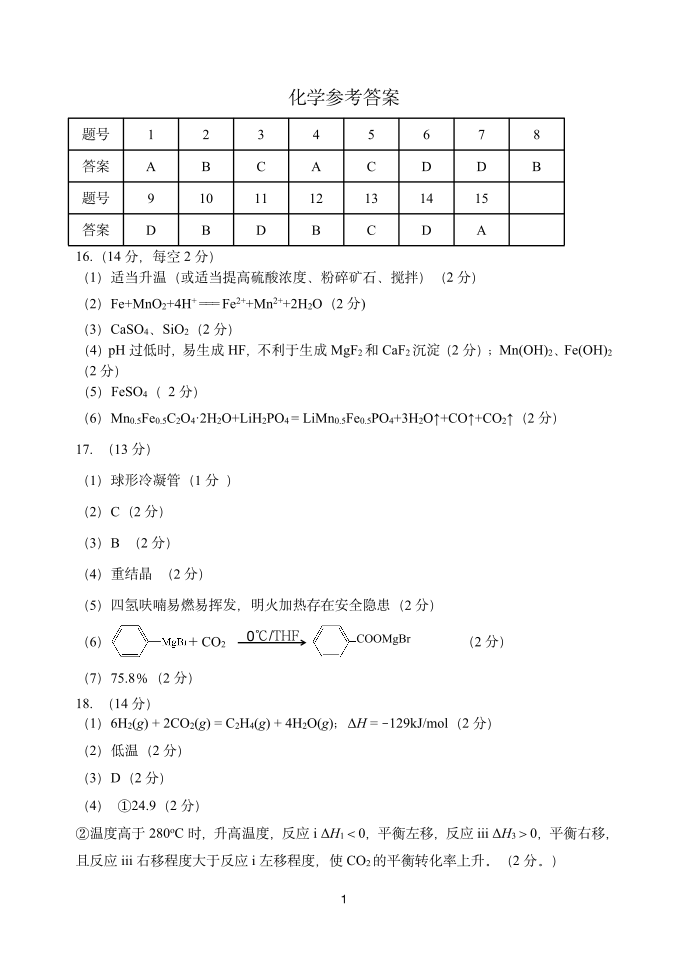 东北三省四市教研联合体2025届高考模拟考试(一)化学答案