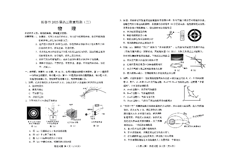 吉林省长春市2025-2025学年下学期高三质量监测(三模)物理