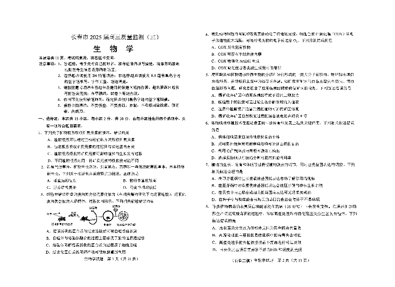 吉林省长春市2025-2025学年下学期高三质量监测(三模)生物