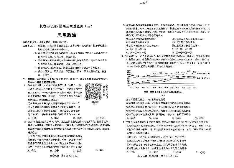 吉林省长春市2025-2025学年下学期高三质量监测(三模)政治