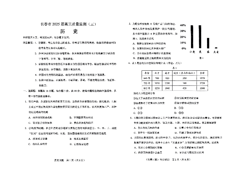吉林省长春市2025-2025学年下学期高三质量监测(三模)历史