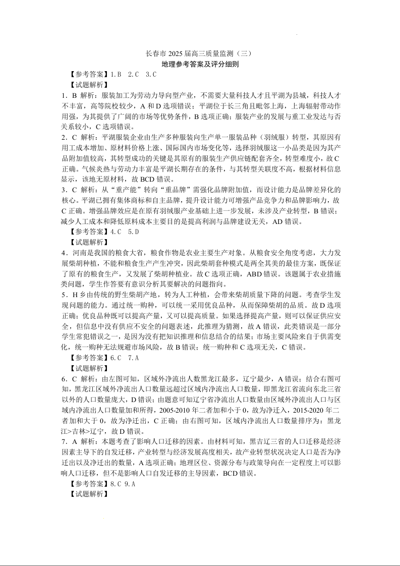 吉林省长春市2025-2025学年下学期高三质量监测(三模)地理答案