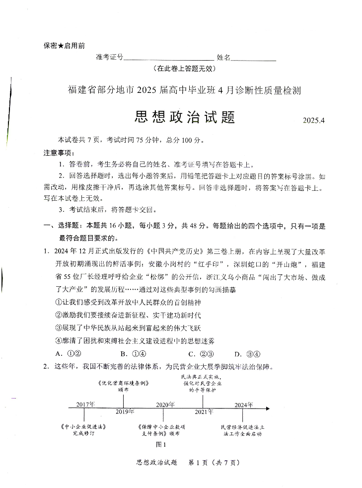 福建省九市2025届高中毕业班第三次质量检测(福建三模)政治