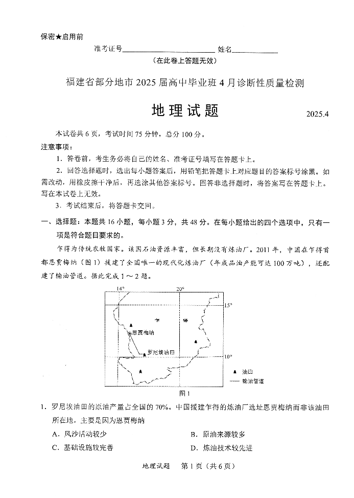 福建省九市2025届高中毕业班第三次质量检测(福建三模)地理