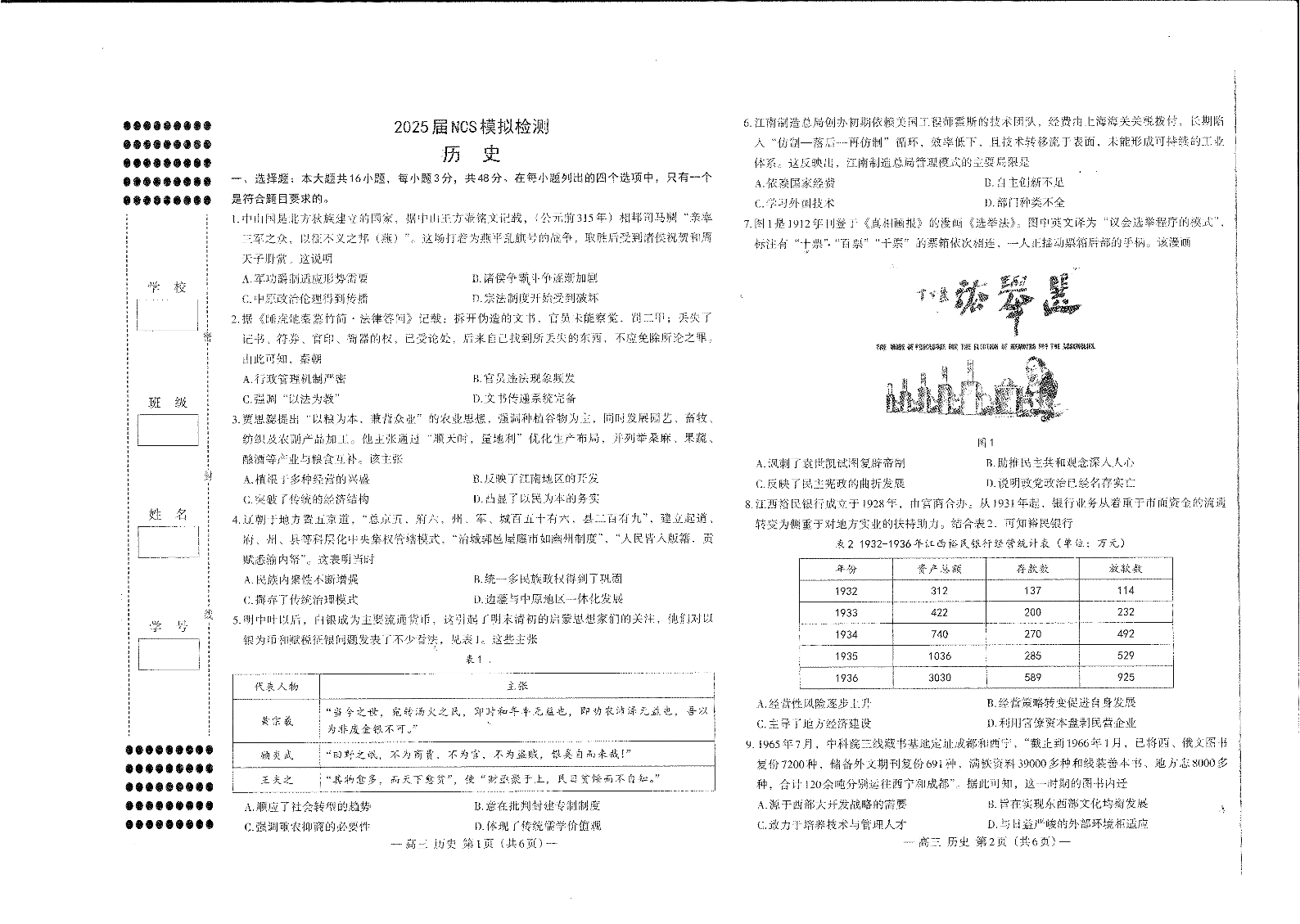 江西省南昌市2024-2025学年高三二模测试历史