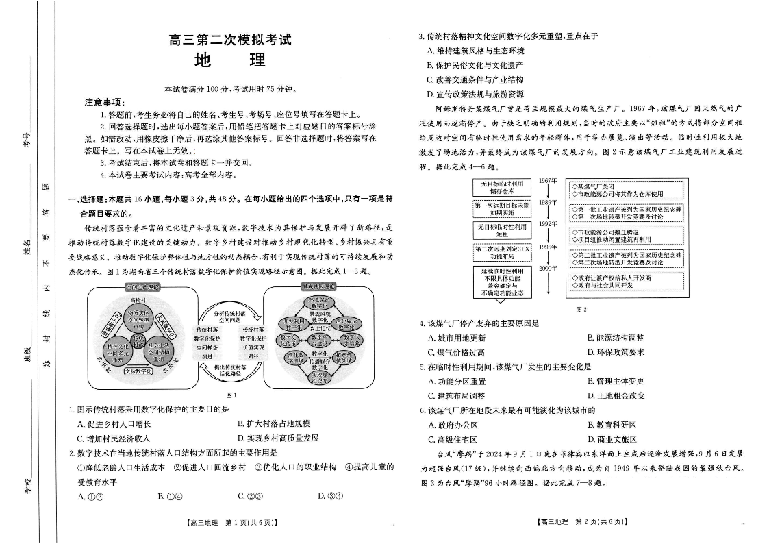 河南省新乡金太阳2025届高三第二次模拟地理+答案