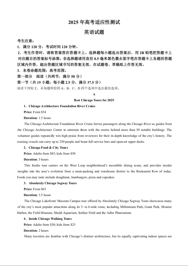 贵州省2024-2025学年下学期4月高三适应性考试英语