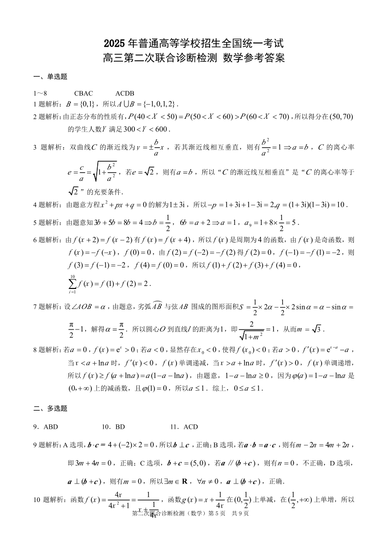 重庆市康德卷2024-2025学年全国高考高三二诊检测数学答案