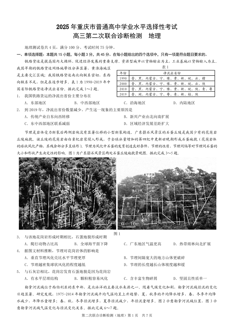 重庆市康德卷2024-2025学年全国高考高三二诊检测地理