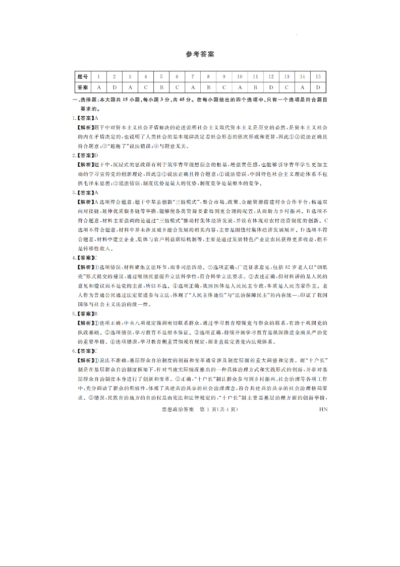 河南省金科新未来大联考2024-2025学年下学期4月高三模拟预测政治答案
