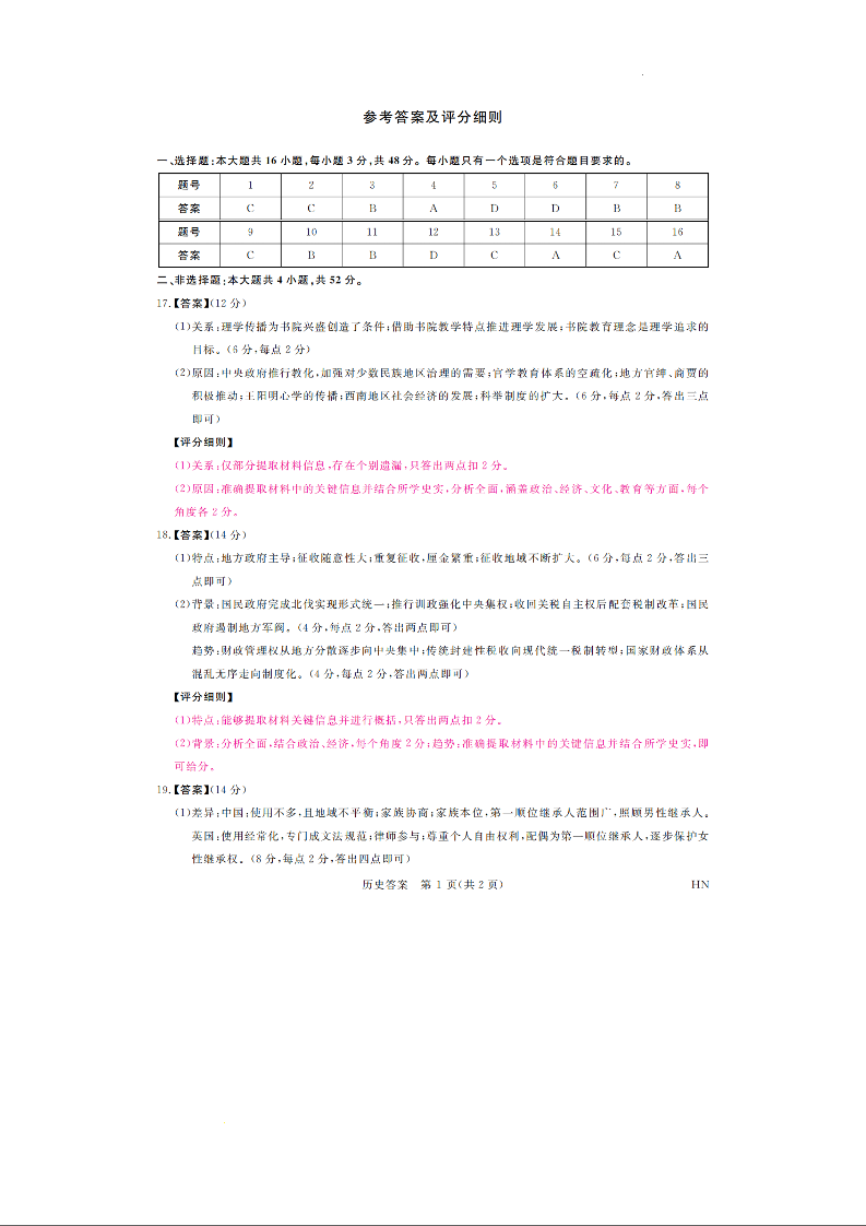 河南省金科新未来大联考2024-2025学年下学期4月高三模拟预测历史答案