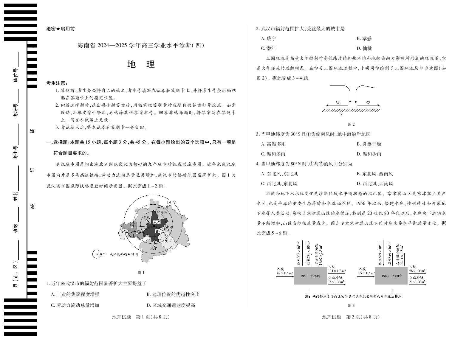 海南省区域高中2024-2025学年下学期高三高三学业水平诊断(四)地理