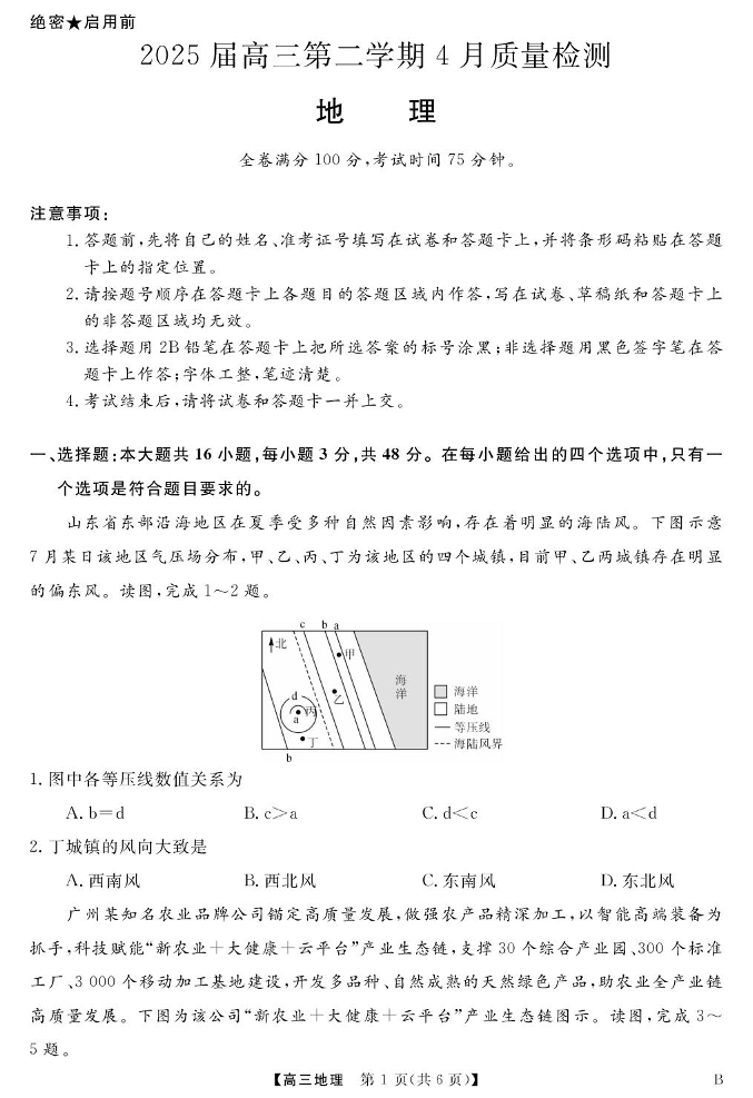 安徽华师联盟(师大附中)2024-2025学年下学期4月高三质量检测地理+答案