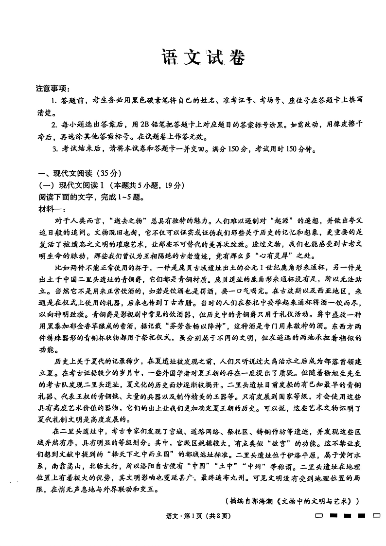 重庆市巴蜀中学2024-2025学年高三高考适应性月考卷(七)语文