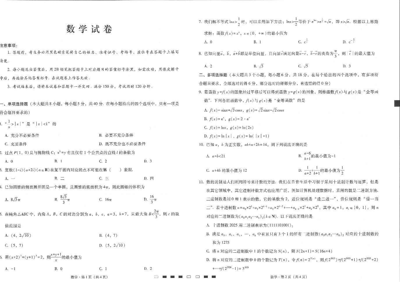 重庆市巴蜀中学2024-2025学年高三高考适应性月考卷(七)数学