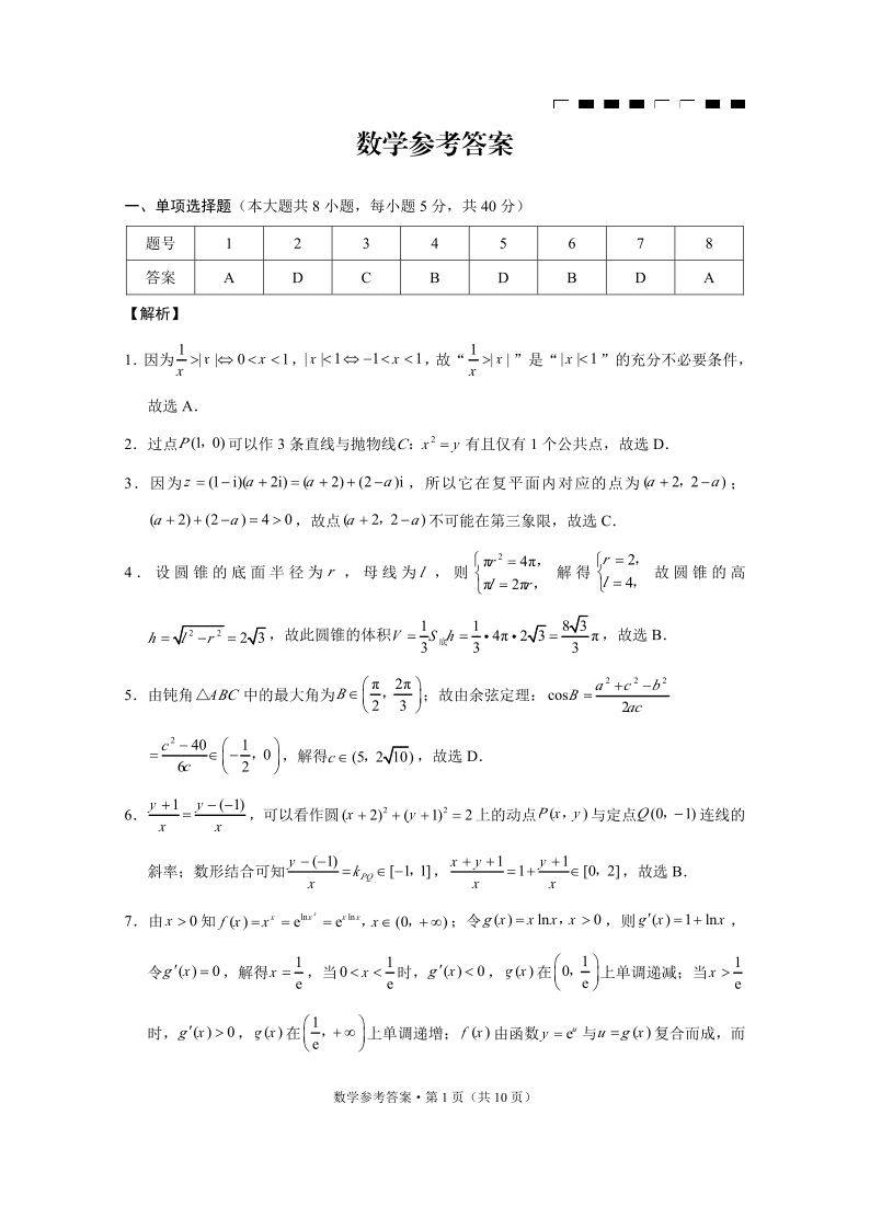 重庆市巴蜀中学2024-2025学年高三高考适应性月考卷(七)数学答案