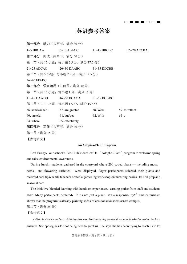 重庆市巴蜀中学2024-2025学年高三高考适应性月考卷(七)英语答案