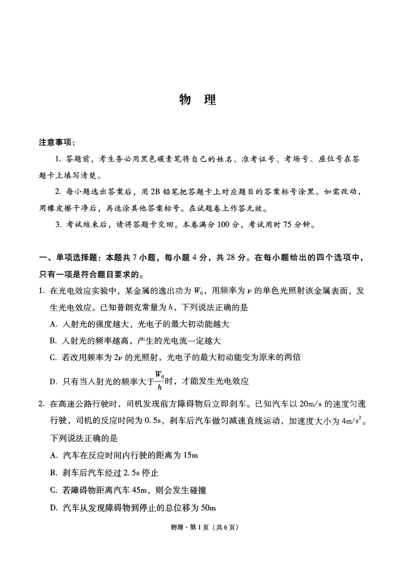 贵州省贵阳市七校2024-2025学年下学期高三联考(三)物理+答案