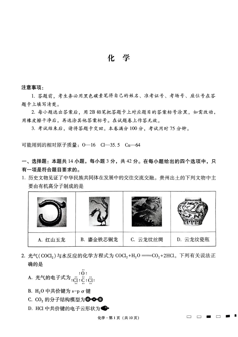 贵州省贵阳市七校2024-2025学年下学期高三联考(三)化学+答案
