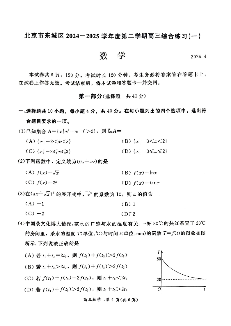 北京市东城区2024-2025学年下学期高三一模数学+答案