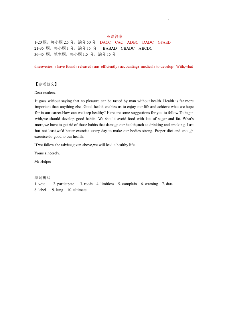 黑龙江省哈尔滨四中2023-2024学年高二上学期第一次考试英语答案
