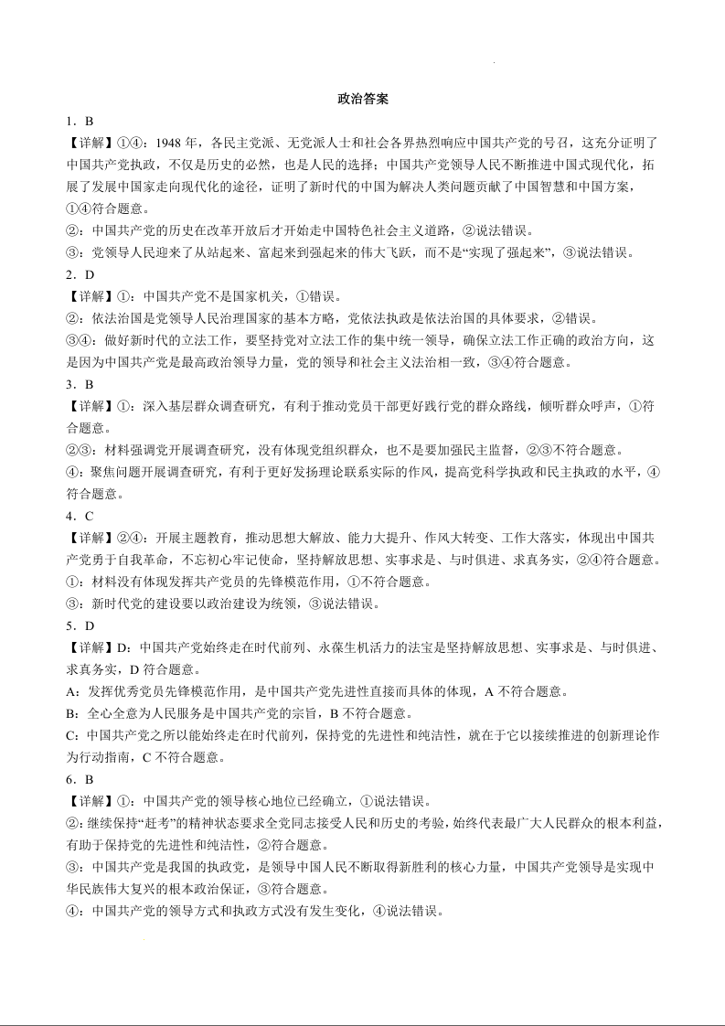 黑龙江省哈尔滨四中2023-2024学年高二上学期第一次考试政治答案