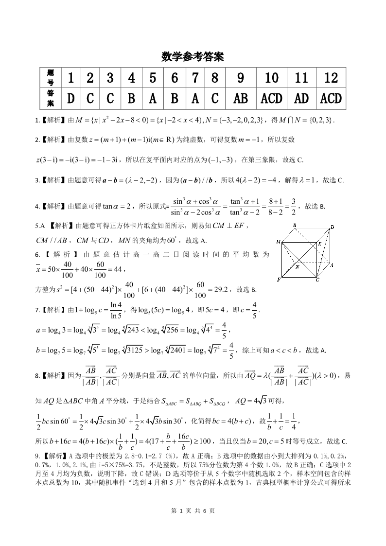 安徽省皖江名校2023-2024学年高二上学期开学联考数学答案