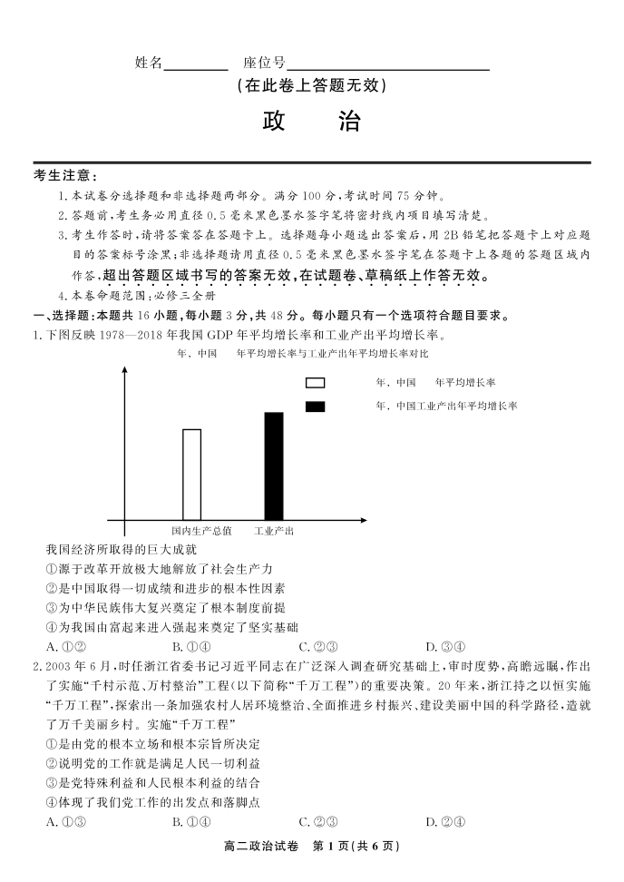 安徽省皖江名校2023-2024学年高二上学期开学联考政治