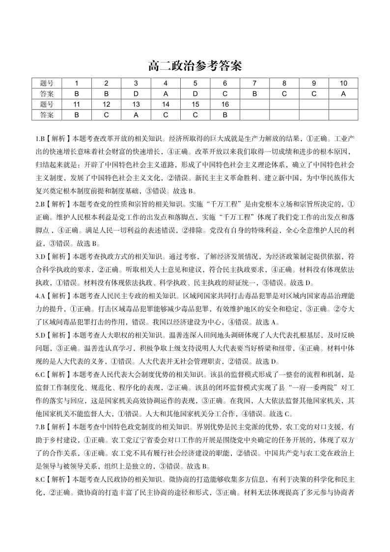 安徽省皖江名校2023-2024学年高二上学期开学联考政治答案