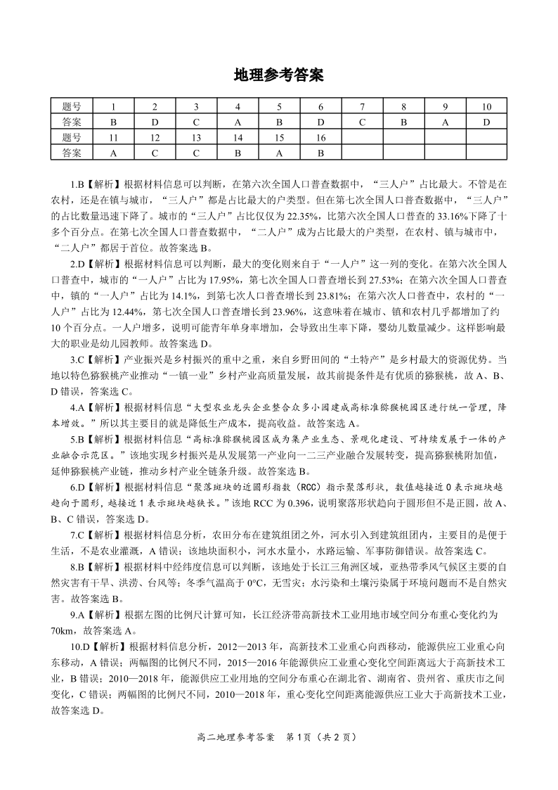 安徽省皖江名校2023-2024学年高二上学期开学联考地理答案