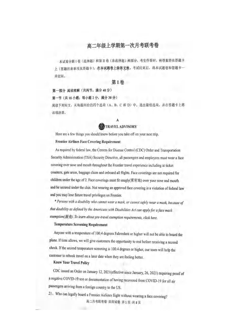 河南省五县联考2024届高二上学期第一次联考英语+答案