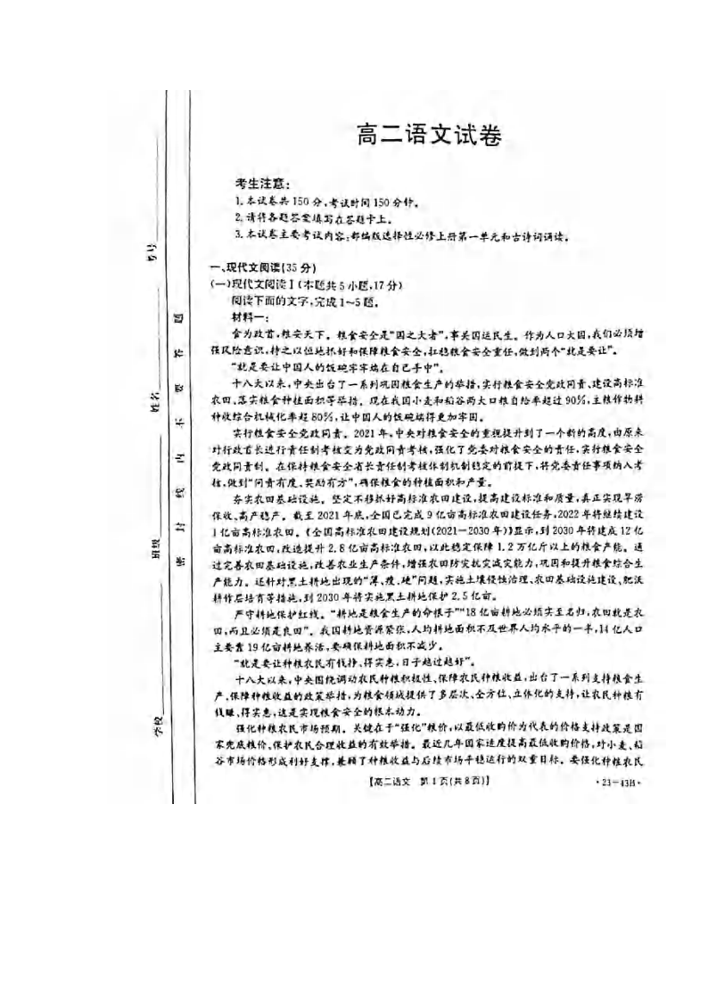 湖北省孝感市2024届高二上学期9月联考语文+答案
