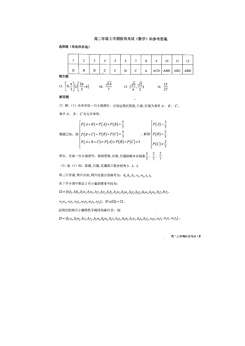 吉林省长春市东北师范大学附属中学2023-2024学年高二上学期第一次月考数学答案